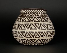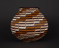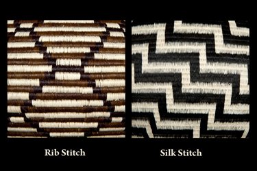 There are also two types of stitches: rib or silk. To create a rib stitch, the needle goes through the top of the coil. The silk stitch is produced by putting the needle in the middle of the coil. As a result, the rib stitches show a distinct ridge on the basket. If you touch a rib stitched basket, you will feel the coils vs a smooth feel in a silk stitched basket. Weavers and collectors have no special preferences on one over the other.