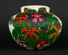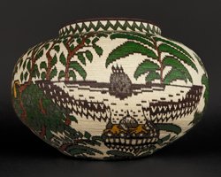 While the Wounaan have advanced their technical skills at weaving finer baskets, they have also developed their artistic skills to weave more complex rainforest designs such as flowers, hummingbirds, butterflies, parrots, toucans, jaguar tracks and bats. Some master weavers weave large non-repetitive jungle scene baskets that can take a year or two to complete. Some just weave miniatures.